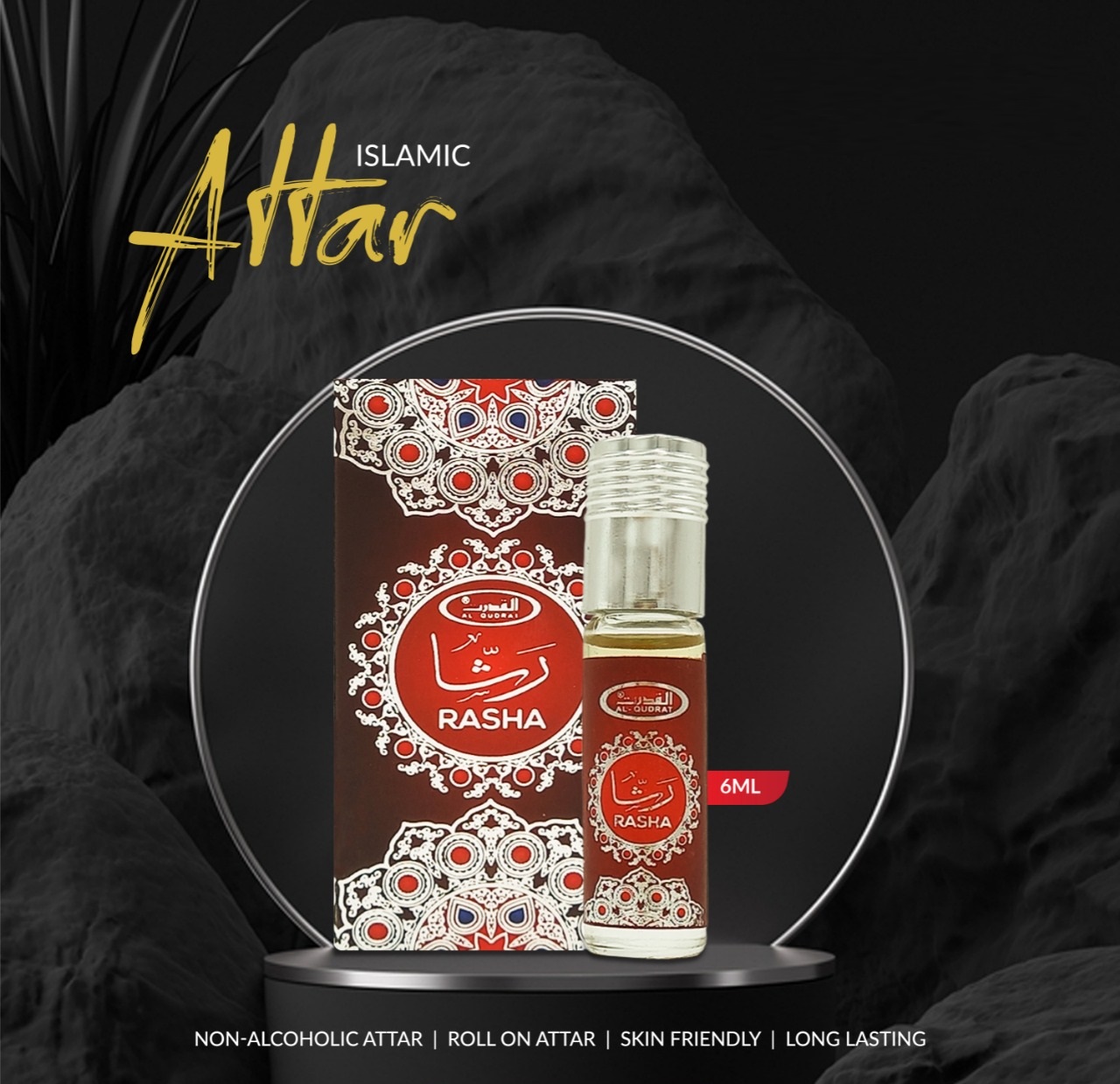 RASHA ATTAR  by  Al-QUDRAT, NON – ALCOHOLIC ATTAR, SKIN FRIENDLY, LONG LASTING. 6ml.