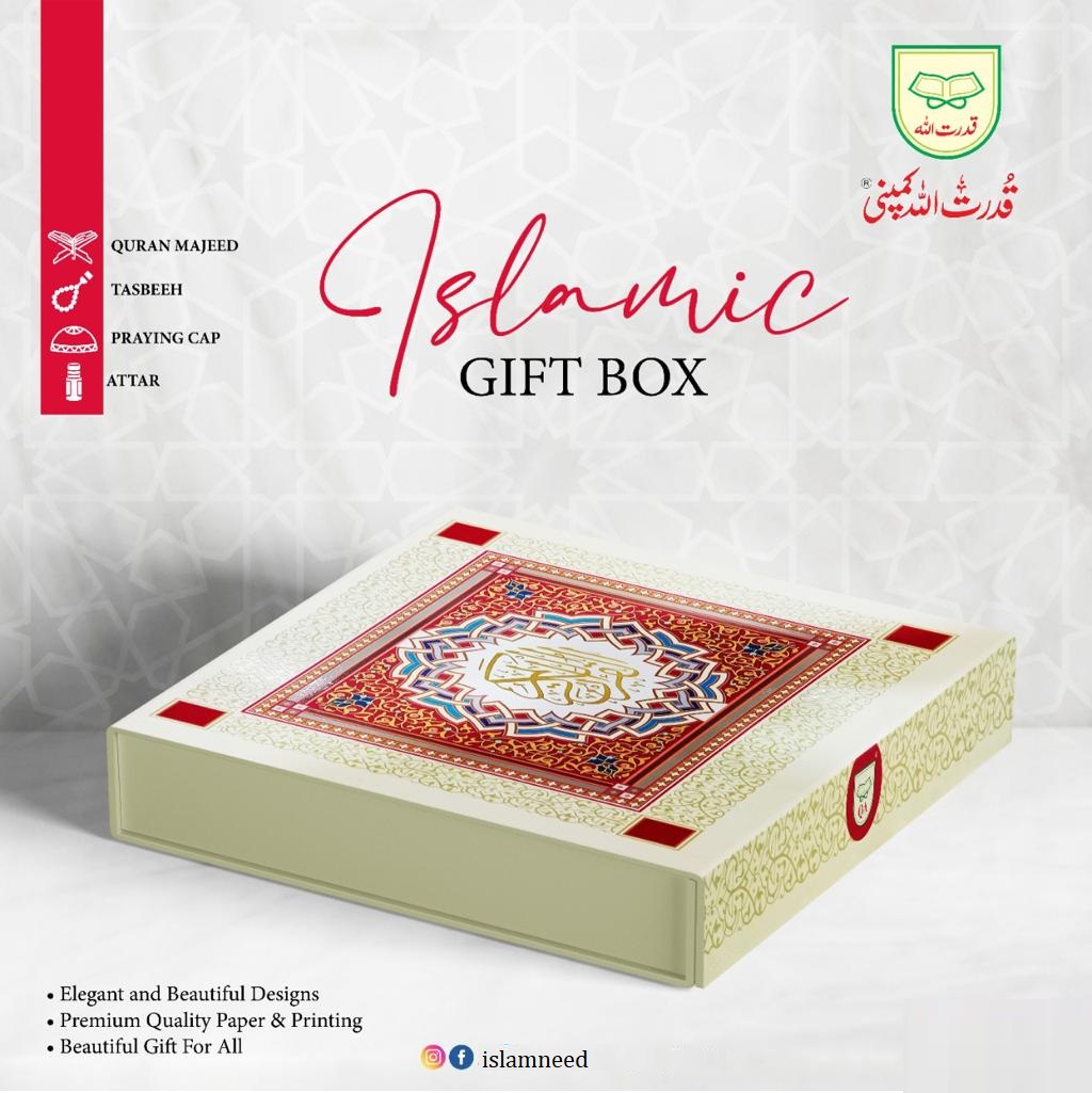 ISLAMIC GIFT BOX SET QURAN-e-KAREEM with Urdu Translation, with ATTAR, CAP and TASBEEH.