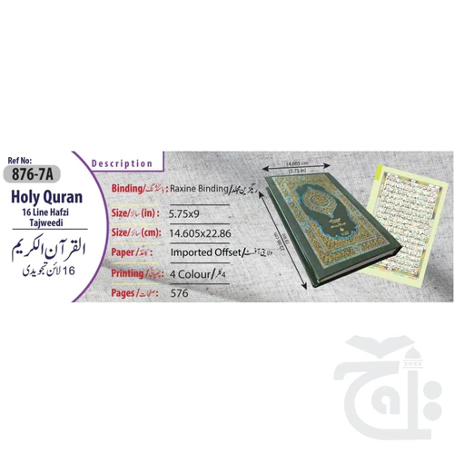 Holy Quran Tajweedi 16 Line Rianbow 876-7A